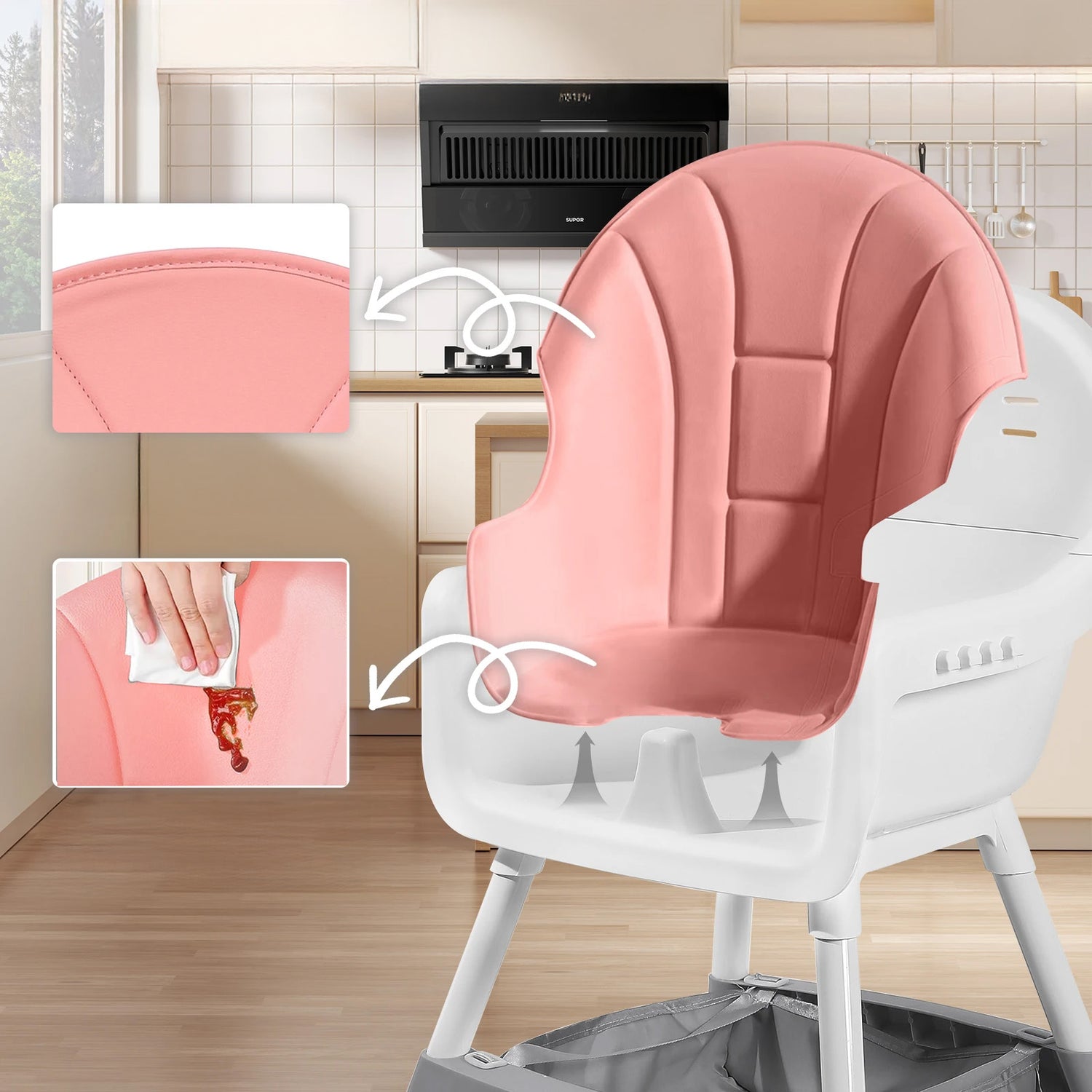 Une chaise haute pratique et compacte qui grandit avec votre enfant. Confort, sécurité et gain de place réunis pour des repas sereins.