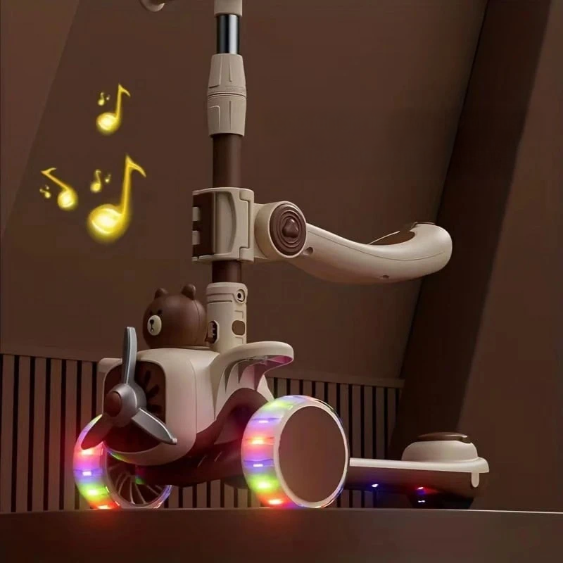 Ses roues lumineuses antidérapantes, son frein arrière et sa structure robuste assurent la sécurité de l’enfant, tandis que les musiques intégrées rendent chaque sortie plus amusante.
