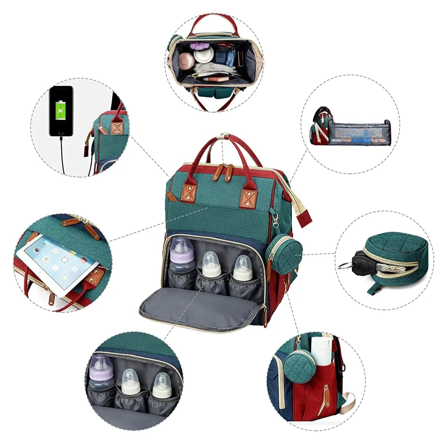 Grâce à son tissu imperméable et résistant, ce sac à langer est durable et facile à entretenir. Les bretelles rembourrées assurent un port confortable, même lors de longues sorties. Le lit pliant intégré crée un espace sécurisé et confortable pour bébé, idéal pour les siestes ou les changes improvisés.