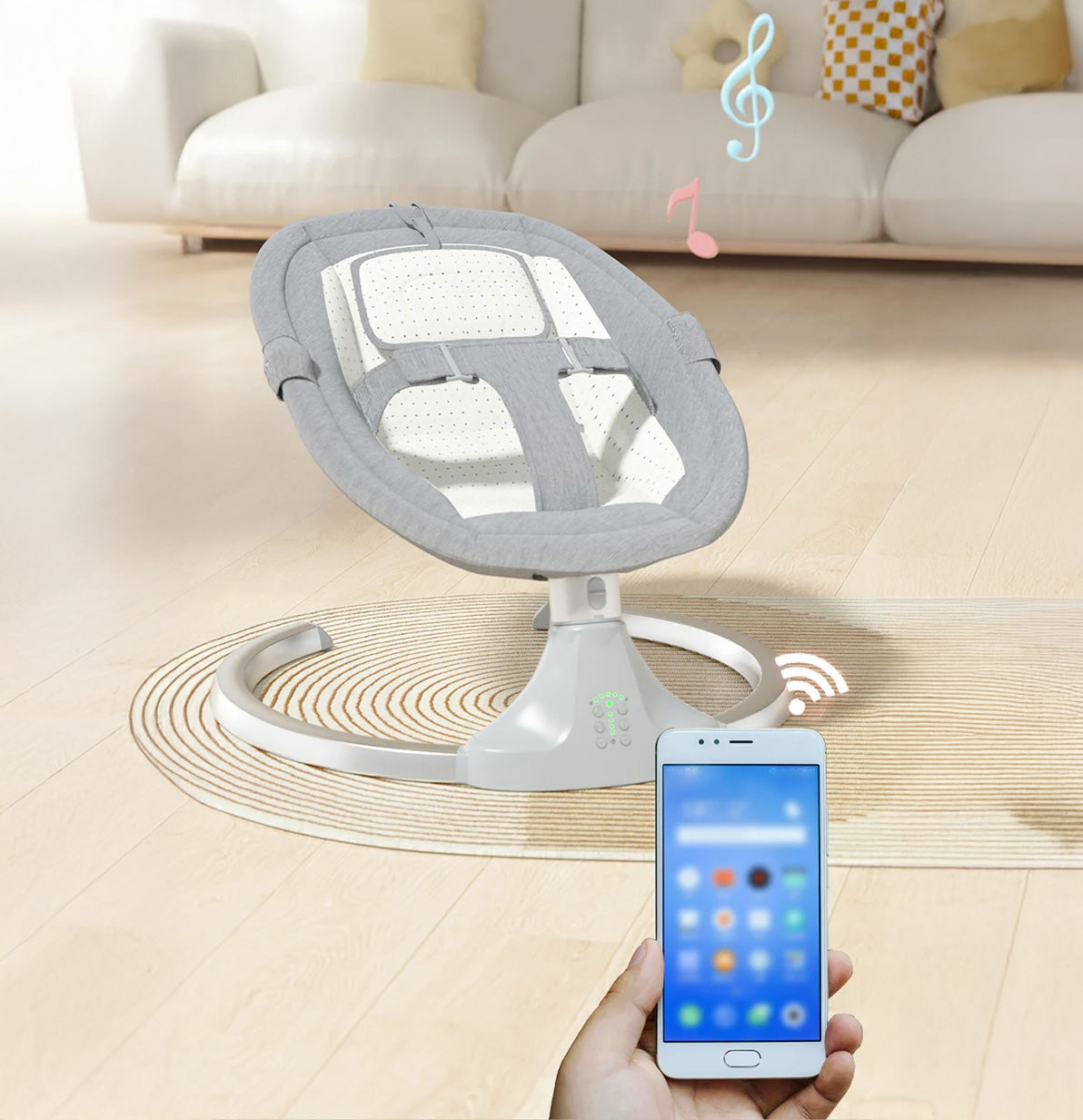 Apaisez bébé en toute sécurité grâce à ce transat-berceau électrique. Balancement doux, confort optimal et design élégant pour des siestes sereines.
